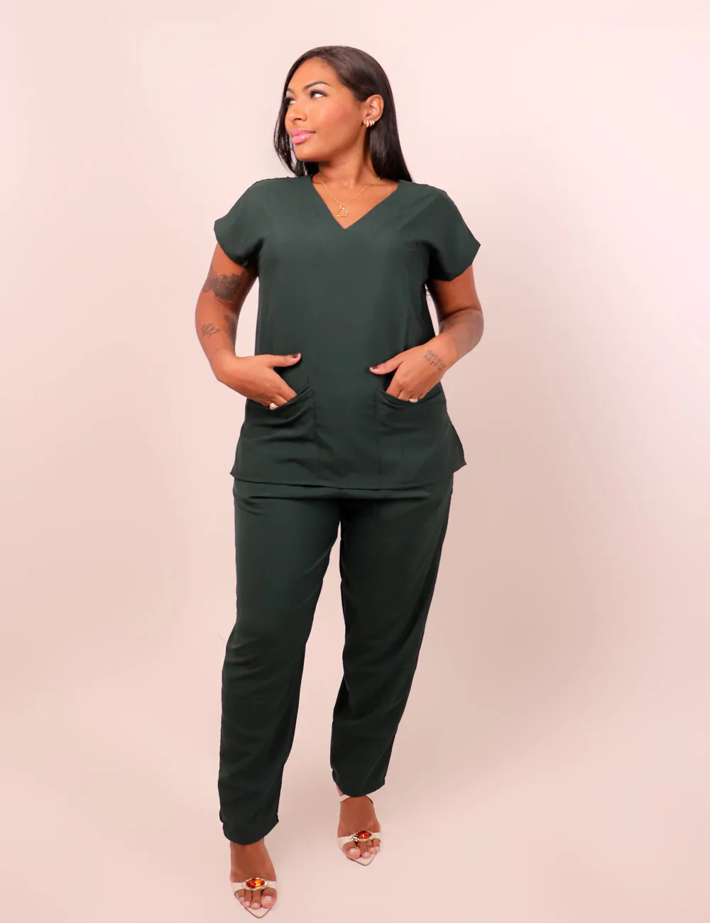 Resistência ao Desgaste: O tecido não amassa e não desbota, mantendo sua aparência profissional mesmo após várias lavagens. Secagem Rápida: Após a lavagem, os scrubs secam rapidamente, permitindo que você os utilize novamente sem demora.